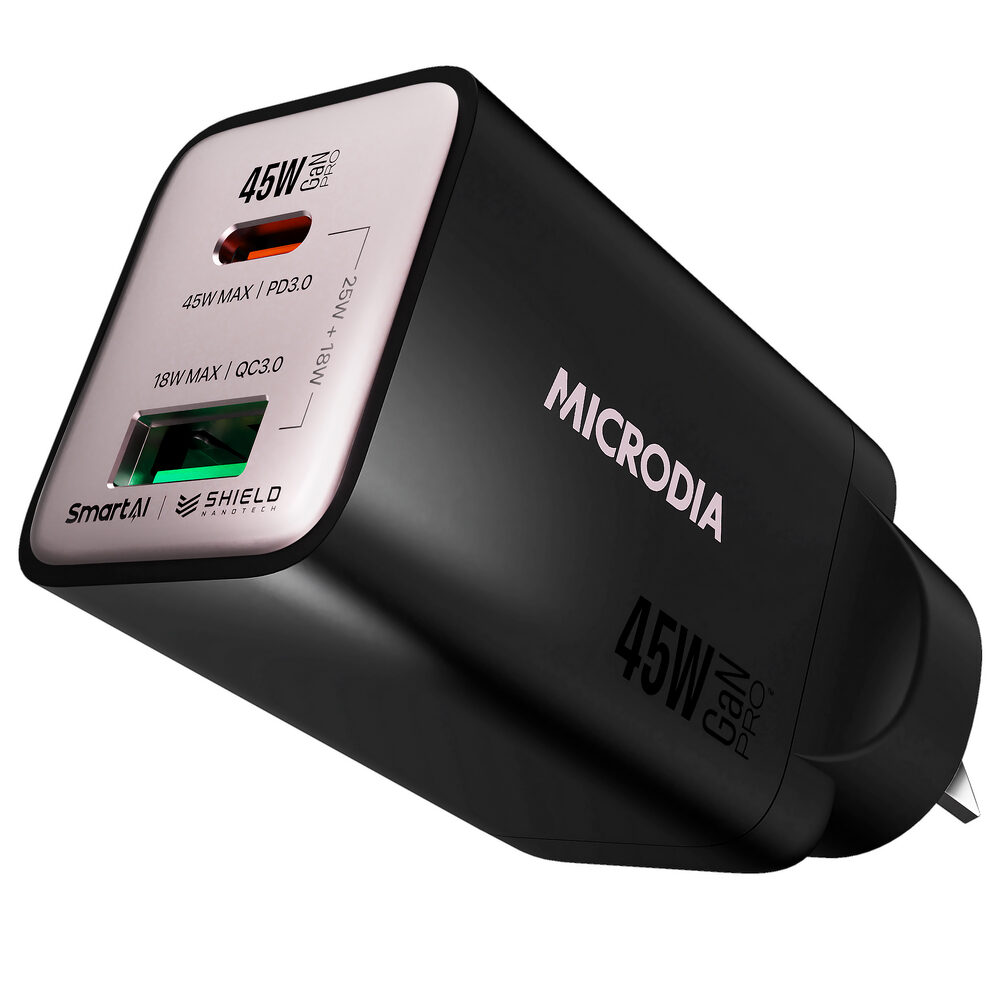 MICRODIA SMARTCUBE NANO 45W DUAL PORT GAN WALL CHARGER – BLACK