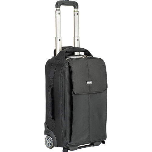 Protect your camera gear during travel and storage in the black Airport Advantage Roller from Think Tank Photo. This convenient case accommodates two DSLRs with attached lenses, four additional lenses, related accessories, and a 15″ laptop. The padded, touch-fastening, interior dividers are adjustable for optimal protection and organization. The front of the case has a dedicated laptop compartment and various zippered accessory pockets are located inside the lid. For easy access, the spacious main compartment unzips on three sides. The YKK zippers accept a user-supplied padlock for added security.