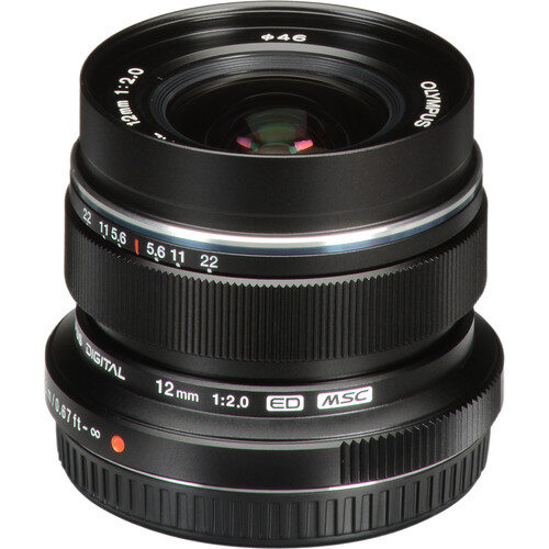 A compact wide-angle prime with intuitive handling and an advanced optical design, the black M.Zuiko Digital ED 12mm f/2 from Olympus is a 24mm equivalent lens for Micro Four Thirds mirrorless cameras. The wide focal length pairs with the bright f/2 maximum aperture to benefit available light shooting as well as astrophotography applications. The lens’s optical design makes use of one aspherical element, one DSA (Double Super Aspherical) element, and a Super HR (high refractive index) element to reduce spherical aberrations and control distortion for notable sharpness, and one extra-low dispersion element reduces color fringing for high clarity and color accuracy. Additionally, the lens is characterized by its Movie & Still Compatible autofocus system for quick and quiet performance, as well as a manual focus clutch and Snapshot Focus mode for intuitive control over focus position and depth of field.