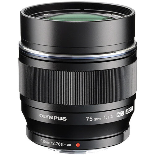 Characterized by its telephoto design and bright maximum aperture, the black M.Zuiko Digital ED 75mm f/1.8 from Olympus is a 150mm equivalent prime for Micro Four Thirds mirrorless cameras. Coupled with the reach and visual compression of the focal length, the bright f/1.8 maximum aperture enables extensive control over depth of field to make this lens ideal for portraiture applications. Its optical design incorporates three extra-low dispersion elements and two high refractive index elements to reduce a variety of aberrations and color fringing for sharp, clear, and color accurate imagery. A ZERO coating has also been applied to individual elements to suppress surface reflections and flare for greater contrast and color fidelity in a variety of lighting conditions. Additionally, a Movie & Still Compatible (MSC) autofocus system is employed to deliver quick, quiet, and precise focusing performance to suit both video and photo applications.