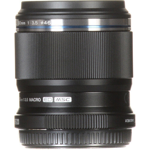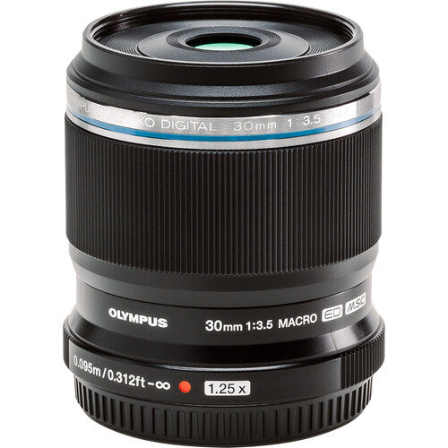 A svelte lens designed for close-up photography, the M.Zuiko Digital ED 30mm f/3.5 Macro Lens from Olympus is a 60mm equivalent prime for Micro Four Thirds mirrorless cameras. Characterized by its 1.25x greater-than-life size maximum magnification, this lens also has a 3.7″ minimum focusing distance, for a minimum working distance of 0.6″, to greatly benefit working with close-up subjects in great detail. This close-focusing capability has a simple, yet effective optical design that incorporates one aspherical element, one Dual Super Aspherical (DSA) element, and one Extra-Low Dispersion Aspherical (EDA) element to minimize spherical and chromatic aberrations for improved sharpness and clarity.