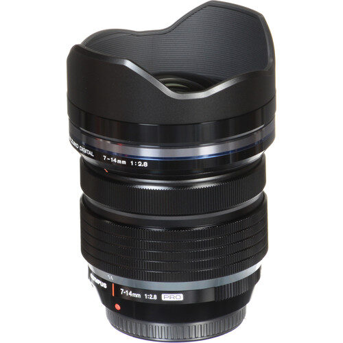A versatile wide-angle zoom for Micro Four Thirds mirrorless cameras, the M.Zuiko Digital ED 7-14mm f/2.8 PRO from Olympus is a 14-28mm equivalent lens featuring a constant f/2.8 maximum aperture for consistent performance throughout the zoom range. A suite of aspherical, extra-low dispersion, and high-refractive index elements are featured within the optical design, and help to minimize spherical and chromatic aberrations throughout the zoom range for increased clarity and sharpness. Additionally, a ZERO coating has been applied to control flare and ghosting for improved contrast and color fidelity. A weather-resistant design benefits handling in trying conditions while an L-Fn button offers lens-based control over various settings. Additionally, a Movie & Still Compatible autofocus system achieves fast, smooth, and silent focusing performance to benefit both photo and video applications. As a fast, high-performance wide-angle zoom, this Micro Four Thirds lens pairs an optimized optical layout with refined physical details to excel in a variety of working conditions.