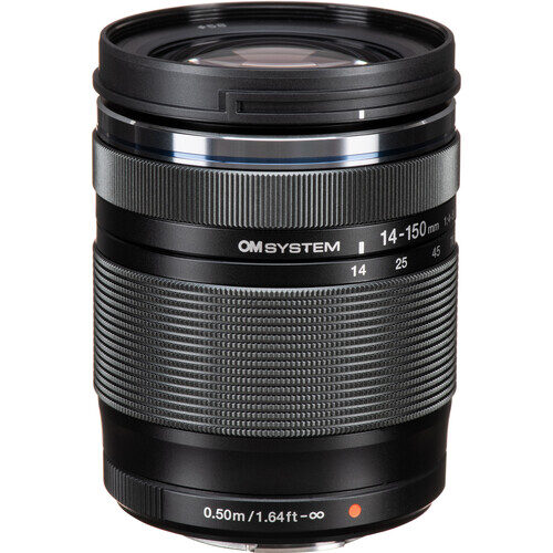 Designed as a one-lens solution, the M.Zuiko Digital ED 14-150mm f/4-5.6 II Lens from OM SYSTEM is an extremely versatile all-in-one zoom for Micro Four Thirds mirrorless cameras. Providing a 28-300mm equivalent focal length range, this lens spans a wide-angle to telephoto reach to suit photographing in nearly any situation. Despite its reach, the lens still remains compact for easy portability, and it utilizes a sophisticated optical design, comprised of various aspherical, low dispersion, and high refractive index glass elements, to reduce aberrations and distortion for high sharpness, clarity, and color accuracy. A ZERO coating has also been applied to suppress flare and ghosting for improved contrast when working in strong lighting conditions. Additionally, this 14-150mm lens also sports a Movie & Still Compatible (MSC) AF system that is quick and quiet and has a weather-resistant construction to suit working in inclement weather conditions.